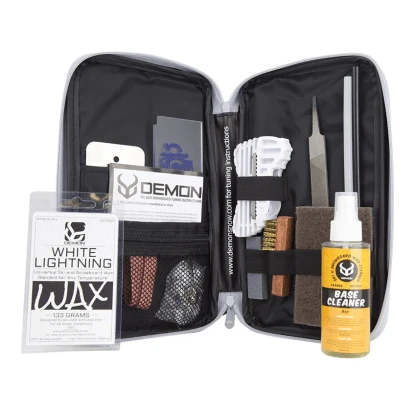The Demon Mechanic Ski and Snowboarding Tuning kit gives you all the tools you need for a proper ski/snowboard wax and tune up job. It comes with Demon’s white lightning universal wax and Demon’s citrus base cleaner. Just add an iron and you are set!
